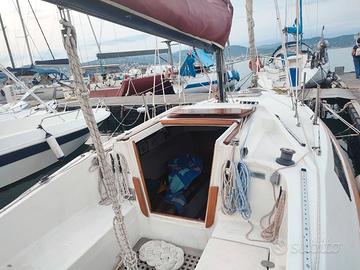 Vendita barca a vela Piviere 6,60 in pontile . Barca in vetroresina con motore fuoribordo Mercury 10 Hp con alza e abbassa motore idraulico , dotata di 3 cuccette ,bagno, lavandino. Presenti doccetta esterna e Gps portatile . A parte possibilità di trattativa per POSTO BARCA.