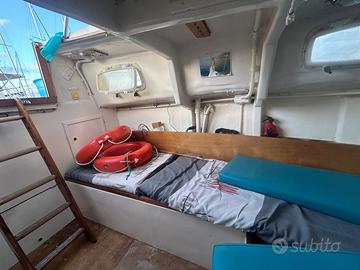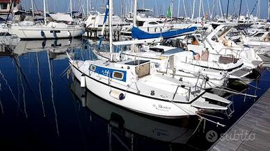 AIA 670 (Plastimare) <7 m. – varo 1995, natante a vela versatile e pronta per l'uso. Barca ideale sia per imparare sia per divertirsi: utilizzata per scuola vela,regate e crociere nel Tirreno. Facile da condurre e dai costi di gestione contenuti. Cabina spartana ma comoda; vita di bordo prevalentemente all’aperto. Motore fuoribordo Johnson 15 CV (piede lungo, accensione manuale + elettrica). Randa riparata, fiocco 'North Sail' e Gennaker in buone condizioni con manovre in pozzetto. Impianto 12V/220V + pannello solare. Ancora con catena e cima inclusa. Pulizia carena e tagliando motore effettuati a luglio 2025. Dotazioni di sicurezza escluse. Barca solida, affidabile e molto divertente: perfetta come prima esperienza o per chi cerca un mezzo semplice e autentico. La barca necessita di alcuni lavori di ripristino per tornare al 100% dell’operatività, interventi comunque accessibili e ideali per chi ha manualità e passione per il fai-da-te.