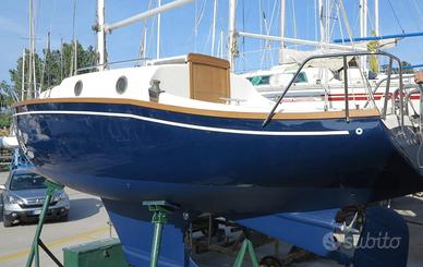 Progetto Sigovich, cantiere Alaver, il QR 680 è un natante in VTR costruito tra la fine degli 60' e l'inizio degli anni 70'. Il. motore entrobordo Farymann è stato sbancato due anni fa e sostituito con motore fuoribordo Honda 10 cv con avviamento elettrico e comandi in pozzetto. Presente tutta la veleria d'epoca. Opera viva e opera morto in ottime condizioni. La coperta è stata irrobustita con uno strato di termanto resinato. Abbisogna di una mano d'amore per tornare a splendere in tutta la sua bellezza.