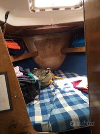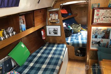 Barca a vela cantiere Cider modello Sangiovese 27 piedi Lunghezza f.t. 7,80 mt | Larghezza 2,40 mt | Stazza 2,5 ton | Scafo in vetroresina Natante disimmatricolato, limiti di navigazione dalla costa: 12 miglia. Layout interno: cabina di prua matrimoniale, dinette con divani contrapposti (altri due posti letto), cuccetta di quarto lato di dritta (attualmente usata come stivaggio), bagno separato con WC marino e doccino.Dinette completa di piccolo lavabo, fornelli a gas a due fuochi, frigo a pozzetto. Motore: entrobordo diesel a linea d’asse Lombardini LDW 1003 M 28cv + fuoribordo per tender Mercury 2.2cv Dotazioni Serbatoio Gasolio 25 litri, Serbatoio acqua 200 litri 2 batterie (100 A): 1 Servizi e 1Motore, con selettore Attacco corrente in banchina con caricabatterie, inverter e prese 220 in cabina e dinette Pilota automatico rimovibile Autohelm 1000 Strumento bidata (velocità e profondità) riportato in pozzetto Ecoscandaglio di rispetto anch’esso visibile dal pozzetto Bussola Ancora CQR 12kg + 50 metri di catena Salpa-ancora elettrico azionabile dal pozzetto Bimini-top con tasche per ospitare due pannelli solari flessibili da 100W (attualmente uno presente) gestiti con ripartitore di carica Victron Zattera costiera entro 12mg, da revisionare Doccetta esterna a poppa Panche rivestite in Iroko, pozzetto con Carabottino in Iroko Spiaggetta di poppa con scaletta Visibile a Salivoli (Piombino) fino al 30 Aprile, Baratti dal 01 Maggio Prezzo 6.000€ • ragionevolmente trattabili