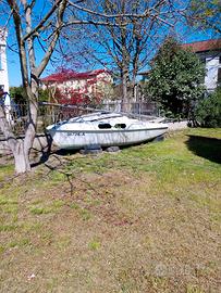 Barca a vela completa di vele.Mancano i vetri degli oblò e da mettere un po' a posto la porticina...