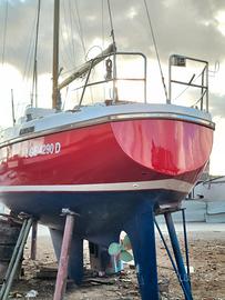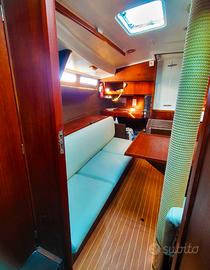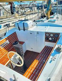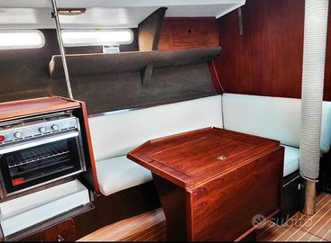 Stanza di poppa con letto matrimoniale, pozzetto centrale ben protetto, spaziosa dinette con cucina bagno e stanza di prua. Barca completa di randa e genoa in buono stato.