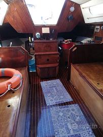 Vendo stag 29 varato nel 1984 Conducibile anche in solitario con autopilota e manovre (drizze comprese) rinviate in pozzetto. Reattiva e divertente, presa terzaroli semplificata dalla randa avvolgibile nel boma con cime di comando rinviate in pozzetto, genoa su rollafiocco. Tessuto vele in buono stato generale. Motore entrobordo diesel Farymann FK3 18CV 3 cilindri revisionato come segue: nel 2019 guarnizione testata, pompa C, riser e scarico - nel 2020 rettifica cilindri con pistoni e valvole nuovi). 2 batterie da 100 Ah come nuove. Serbatoio diesel maggiorato lt 40 in polietilene (non arrugginisce!), facilmente accessibile per pulizia morchie. 2025 sostituito alternatore. Parte al primo colpo anche a freddo. Plancetta di poppa e scaletta per discesa a mare. Interni in legno di mogano (quello vero anni ‘80, vedi foto) trattati con epossidica trasparente. Dinette con 2 cucette, lavandino con acqua dolce (2 serbatoi da 30 lt), ghiacciaia (può accogliere impianto frigo). Locale bagno separato ( altezza max 1,50) con wc marino da revisionare. Cabina di prua con cuccetta a V e armadietto per salvagenti. Ancora su musone di prua, catena mt 30.