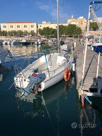 Barca a vela a chiglia fissa modello Tucano cantiere Plastivela con robusto carrello stradale e per il rimessaggio, motore Evinrude 7.5, n. 3 vele ( randa, genoa e fiocco), pannello solare ed impianto per ricarica batterie.