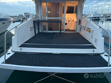 Barca Acquaviva 35 (senza motori) barca sano in ottimo stato, interni e impianto elettrico 12v e 220v rifatto a nuovo. interni, tappezzeria e elettrodomestici nuovi. Barca NON immatricolata. Quindi natante, ovviante corredata di documentazione che attesta il tutto. ampio pozzetto di poppa, con tavolo comodamente per 6 persone. Prima cabina con plancia, e divano, dotata di posta scorrevole ambo i lati. sottocoperta ampia dimette con divento letto, cucina con forno, lavello, fornello, frigo e freezer. Bagno separato con ex, lavello e doccia. camera matrimoniale con armadietti. in totale ci sono 6 posti letto. Ampio prendisole di prua. La barca montava 2 entrofuoribordo volvopenta da 200cv l' uno. Barca ottima da usare con houseboat, oppure da motorizzare con una coppia di fuoribordo a scelta in base alle proprie esigenze. Lo scafo è sano e non ha alcun problema. Non perditempo, contattare solo se interessati all' acquisto. Non ho necessità di vendere, anzi la vendo a malincuore. Ripeto contattare solo se siete seriamente interessati. La barca si trova a Marina di Ravenna.