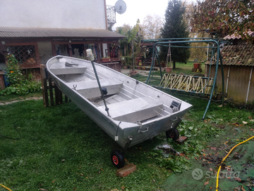 Barca alluminio Ally3.70 con pedane in legno marino ,munita di rottele di trasporto