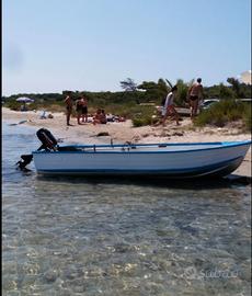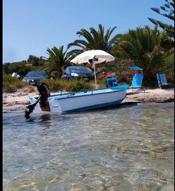 BARCA MT 3,60 CON MOTORE MERCURY CV 3.3 COMPLETA DI INVASO IN LEGNO CON RUOTE. VISIBILE A CARLOFORTE PREVIO APPUNTAMENTO. COMUNICARE CONTATTO TELEFONICO
