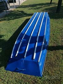 per colpa di gente poco seria, rimetto in vendita barca in alluminio, peso 40 Kg, 3,60 metri x 1,20, usata ma tenuta molto bene, con gavone nella seduta, foro svuotamento con tappo ermetico, sedute rinforzate, porta remi sulle sponde, sul fondo sono stati siliconati delle V in plastica per non strisciare troppo il fondo... senso solo zona Veneto, consegna anche a Le giarette, Parco del brenta, Ghost park, Ca dei lupi...