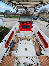 Almarine 22 fish è una imbarcazione lunga circa 6,70 mt con una carena molto profonda a ''V'' la quale le consente una navigazione eccezionale anche con mare mosso , solcando le onde con una morbidezza paragonabile a un gommone , gli spazi della barca permettono di girare intorno alla console con molta comodità , nella barca ci sono 4 gavoni grandi e 2 un po' più piccoli sotto le plancette di poppa . a terra è stato messo del proprietario precedente questo teck sintetico che ormai ha fatto il suo tempo , ripropongo di usarlo perchè molto comodo e confortevole. con la barca è incluso il suo carrello di alaggio con un anno di vita. La barca non ha il motore e strumentazione , disponibile per vederla a ragusa.