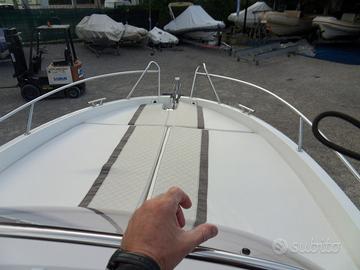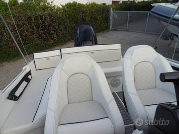 Barca usata AM YACHT anno 2022 con motore Suzuki DF 150 anno 2022 pochissime ore di moto, carrello Cresci da 1500 kg massa complessiva anno 2024. Sono presenti diversi accessori come impianto stereo, doccia, salpa ancore elettrico, idroguida, telo copertura totale GPS cartografico a colori con ecoscandaglio ecc.