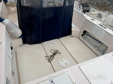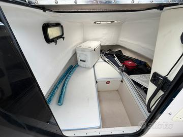 Proline 1992 americana 21 piedi 6,40 con mercury 225 optimax del 2017 con 180ore e con mercury 15cv 4t del 2010 con manetta in plancia Accessori: Pompa sentina rule auto/man 1500gph 2 vasche vivo Verricello elettrico con 400mt di catena Doppia batteria 100ah Doccetta Whf lowrance gps nuovo Simrad cruise 7 nuovo con cartina Tappezzeria interna ed esterna nuova fatta l’anno scorso Impianto elettrico nuovo fatto a regola d’arte con filo pre stagnato marino Sedia da combattimento Teli pilotina nuovi Luci via nuove Luce 360 gradi nuova Dotazioni per 7 persone oltre 12 miglia nuove 2 prese 12 volt per pasturatori e mulinelli elettrici Tendalino nuovo 9 portacanne Timoneria idraulica nuova Il tutto eseguito giugno 2025 Motori appena tagliandati completi Nessun lavoro da fare apparte carena e zinchi prima di rimetterla in acqua. perfetta in tutto Visibile presso: Fabietti Nautical Sevice Barca gommone capelli sacs boston whaler donzi robalo sessa ranieri