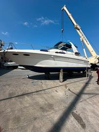Sea Ray Sundancer 310 natante , immacolata, usata . Categoria B portata 12 persone. Lunghezza 11 metri fuori tutto, 2 cabine matrimoniali con materassi nuovi , piu un letto piazza e mezzo in sala da pranzo. Bagno separato con w.c. lavandino e doccia. Cucina con microonde nuovo e piano a induzione nuovo, frigo. Tv satellitare e terrestre 32 pollici.Impianto elettrico 220 sia in banchina che in mare. . Climatizzatore wifi velar nuovo. Due batterie da 180 e una da 160 nuove. Serbatoio acqua 150 litri e bolier acqua calda. Vasche acque chiare e grigie con indicatori livelli. Sistema di navigazione Garmin 923xsv con auto guidance e trasduttore gt 51m-tm per pesca. 2 motori turbo diesel da 250 cv completamente sbarcati rifatti dal costruttore con tutto nuovo e con Poche ore di moto . Piedi completamente revisionati da officina autorizzata. Elica prua . Carenaggio completo totale appena fatto e lucidatura. Serbatoio carburante 750 litri. Consumo orario totale 53 litri. Cucinerie, teli e cerniere nuove. Telo camper, tendalino posteriore, tendalino copertura totale, vari teli e plexiglass nuovi. Velocità massima 35 nodi, 25 di crociera. Spese documentate Richiesta 78.000 euro. Disponibile a qualsiasi perizia e prova in mare. Nessun lavoro da fare per anni. Dotazioni di sicurezza nuove per 12 persone .Anti vegetative e tagliando Motori Aprile 2025 fatti