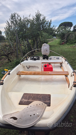 Vendo barca angelo molinari 360 con motore ,carrello, tendalino , kit di salvataggio e scaletta. Motore pari al nuovo, usata pochissimo 20/30 h. Vendo causa inutilizzo. possibilità di essere ristrutturata compresa nel prezzo.