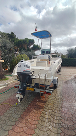 Come da titolo vendesi barca Aquamar 17 (5,10 mt) immatricolata 12/06/2003 autosvuotante e tenuta in modo maniacale sempre in garage ( tenuta pari al nuovo) con motore Selva (Yamaha) Dorado xs 40/60 cavalli con 121 ore di moto immatricolato anno 2014 + carrello omologato MTA 6,5 qli del 2003 con verricello elettrico 4500 lb con comando sia wireless che pulsante con cavo completa de seguenti accessori: