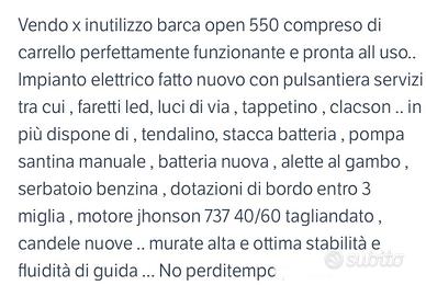 Vendesi barca completa di carrello e motore piu tutto quello da tenere a bordo .. ottimo stato e perfettamente funzionante.. no perditempo prezzo trattabile