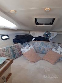 Vendo Bayliner Ciera 2655 anno 1995 - Motore Mercruiser 5.7L entrofuoribordo a benzina con piede Alpha One. Manutenzioni eseguite ogni anno. Quattro posti letto, bagno separato con wc e lavandino, cucina con lavandino, due fornelli,piccolo forno elettrico e frigorifero. Boiler acqua calda, caricabatterie, presa in banchina, tendalino chiusura totale, tendalino invernale, 2 pompe sentina, salpa ancora. Ecoscandaglio, GPS cartografico Lowrance a colori.