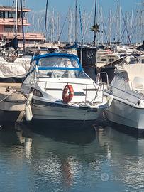 Barca ben tenuta anni 90 ma tutto perfettamente funzionante, ancora elettrica, doccetta interna ed esterna, autoclave, alloggia 70 lt. di acqua serbatoio benzina 200 lt., GPS ed ecoscandaglio, Radiolina nautica, antenna e antenna per il televisore, batterie nuove da 100 A. Lunghezza 8 metri tutto fuori. Il motore entro fuori bordo Mercruiser da 150 cavalli è stato sbarcato a fine stagione per riparazioni. Si vende senza motore che può essere riparato o sostituito. La Barca e' visibile in un cantiere di Nettuno dove si possono ottenere informazioni dettagliate.