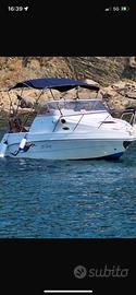 , con autoclave, lavandino,doccetta,wc,doppia batteria.Lo scafo, e'completamente manutenzionato , sono stati eseguiti i seguenti lavori:cuscineria nuova,tendalino in acciaio tre archi con tubi da 25 mm,carena portata a zero, ancora e catena nuova, estintore a bordo ,sostituzione serbatoio benzina e serbatoio acqua,paiolo nuovo,scaletta a scomparsa , lucidatura battagliola, sostituiti inoltre scatola sterzo e trim motore .Da poco è stata effettuata la seguente manutenzione:Olio piede, girante, zinchi motore, pompa di sentina,candele,filtro separatore acqua benzina .Equipaggiata con motore mercury 115 cv del 2002 con solo 300h di navigazione.