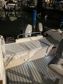 Barca rimessa a nuovo, due motori guidabile senza patente, radio e casse marine, 2 ancore, ecoscandaglio garmin 5, antenna vhf con autorizzazione della capitaneria di porto, tendalino 4 archi, luci di via di fonda e interne, cuscineria completa nuova in più aggiunti gli schienali nel prendisole di prua.