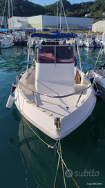 Barca Berlingardo Adriana 20' omologata per 6 passeggeri, con cuscineria prendisole e seduta posteriore rifatta tutta nuova 2024, cuccetta in cui in due ci si può dormire, autoradio nuova, luce interna, due oblò apribili, bussola, girimotore, clacson, pompa sentina azionabile con interruttore, luci funzionanti verde, rossa e 360 di poppa, tavolino con sostegno acciaio inox, altra seduta laterale in legno fatta nel 2024, tendalino alluminio, no wc, serbatoio acqua doccia (compresa) e benzina capienti e ricaricabili facilmente da murata vicino a poppa. Barca prodotta ad agosto 2009. Motore Mercury 40 PRO con elica in acciaio inox compresa, anno motore 2015. Girante cambiata a marzo 2025, revisionato ogni anno.