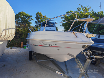 Blumax 19 pro settembre 2024 nuovissima con motore mercury 40 pro con del 2021 con 230 ore di navigazione già rimessato e tagliandato mercury con garanzia fino a luglio 2026, con carrello fabricato nuovo per la barca, non omologato. La barca è munita di tutto con tendalino in acciaio 3 archi,