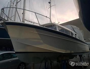 Vendesi per cambio tipologia storica imbarcazione BORA 3, costruita dai Cantieri Riuniti dell'Adriatico (1 serie - 1966) Misure: mt 8.90x2.90 Anno 1966 - 1 serie Motori: Volvo Penta FB151 - 151 HP (anno 1999) Piedi poppieri: Volvo 290 SP Lavori eseguiti recentemente: o Impianto elettrico completamente revisionato o 2 pompe di sentina nuove • Autoclave nuova o Aspiratore nuovo o WC marino nuovo o Plancetta e tendalino nuovi o Musone di prua sostituito o Tutte le luci e il bottazzo sostituiti o Ecoscandaglio e caricabatterie nuovi o Serbatoi revisionati con indicatori nuovi o Motori, piedi e transom sostituiti nel 1999 Alcuni lavori da terminare a un motore. Si accettano proposte e permute con motoscafo altra barca o macchine