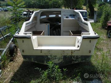 -Barca mt.6 con cabina grande e murate alte. Grande prendisole sopra la cabina. Ottima per gli amanti del faidaté, in quanto l'interno della cabina và finito di ristrutturare. La struttura della barca è molto robusta, ed anche la carena in deriva è solidissima. Possibilità di guidarla senza patente, motorizandola con motore fuoribordo cv40/50 a due tempi(si trovano motori buoni a max 1'000euro), oppure con cv40/60 quattro tempi. Visibile a PortoRecanati(MC). Vendo ad euro 1'000,oo NON TRATTABILE!!!! .....solo contatto Tel.347-4551106 (non le posso leggere, quindi non posso rispondere ad e-mail o messaggi vari).
