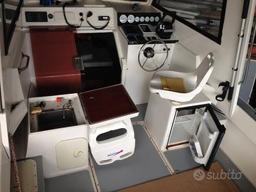 Vendesi barca Solemar 6.60 buona per la famiglia ottima per la pesca con due serbatoi da 150/200 lt due pompe di sentina presa a mare prese per mulinelli elettrici salpa ancora con telecomando frigorifero doccia sia dolce che salata stereo baracchino lavandino sonar radar ecoscandaglio con occhio da 2 kw illuminazione led auto svuotante è molto altro la barca viene venduta senza motore