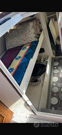 Bagno in locale separato con lavandino, 3/4 posti letto in locale separato, cucina 2 fuochi lavello e frigo, doccetta esterna , serbatoio acqua lt 100.