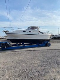 Barca 7.70 metri piu plancetta. con motore Janmar 140 td intercooler in linea d'asse con 1282 ore , motore robusto e silenzioso in perfette condizioni Lo Scafo sotto la poppa allargato per stabilizzare . All'interno troviamo cabina di prua matrimoniale molto comoda, più dinette trasformabile in letto ,bagno separato con lavello e wc elettrico . mobile cucina esterno con 2 fuochi e lavello con cassetti contenitori ,gavoni contenitori sotto il letto di prua e sotto dinette .salpancora elettrico con doppi comandi a prua e consolle di guida .