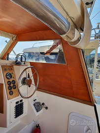 Gavoni laterali nel pozzetto più Govone di poppa grande e profondo che contiene anche il motore del tender vedi foto , timone a ruota con idroguida ,tendalino basculante da abbassare sotto al ponte .