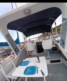 Vendo barca Fjord in ottimo stato con relativo posto barca a Bordighera, motore entrobordo VM 6 cilindri a gasolio, cilindrata 4200 cav. 250 con ampio pozzetto come da foto allegate, cabina con wc e lavavo, angolo cottura,frigorifero, sedute con cuscineria e tavolo trasformabile in letto, ampio giardinetto e scaletta inox, tendalini rifatti da poco cosi come la carena, dotazioni di bordo, ampi gavoni sui lati del pozzetto