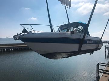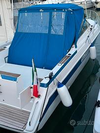 Installato flap , dotazioni : Eco + gps con mappe , frigo esterno, doccetta a poppa, lavandino esterno, wc a mare nuovo, tavolino estraibile , salpa ancora elettrico, due posti letto , e fornello a gas. autoradio etc.