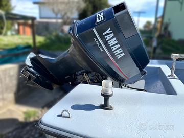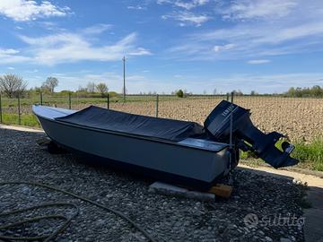 Barca in vetroresina di colore grigio degli anni 90. Rimessa a nuovo recentemente e poi mai utilizzata. Viene venduta completa di: - Motore Yamaha top 25cv con avviamento automatico - Ecoscandaglio Lowrance HDS5 - Strumentazione di bordo completa di n. 5 salvagenti, ancora, remi, estintore. - Telo di copertura impermeabile PREZZO €4200 TRATTABILI