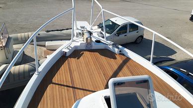 Per passaggio ad altra tipologia di barca, vendo Calafuria 98 anno 1982, 2 motori IVECO AIFO turbodiesel 250 cv ciascuno, modello FIAT 8061.SRM 25 , 1 interamente revisionato e portato a zero ore e nell'altro eseguti importanti e sostanziali lavori quali, iniettori, pompa gasolio, prova compressione, etc, tutto fatturato dimostrabile. Dalla revisione pochissime ore di navigazione. Dimensioni fuori tutta 9,80 x 3,35 metri, dislocamento 8,80 ton. Refitting totale 2019 con dipintura scafo blu notte ( perfetto tuttora), impianto elettrico completamente rifatto, elettronica completa rinnovata con GPS, radar, whf, pilota automatico, wc elettrico., cuscineria interna in pelle nautica, copertua esterna a poppa, rivestimento coperta in teak, insonorizzazione pannelli vano motori, pozzetto in teak, panche in legno. Completa di dotazioni di bordo nuove, cime e parabordi, cavo x corrente 220 e caricabatterie, 3 pompe di sentina, relativa passerella manuale, 2 flaps idraulici. Barca perfetta in tutto, pronta in acqua con prezzo LEGGERMENTE TRATTABILE, previa visione di persona, no perditempo.