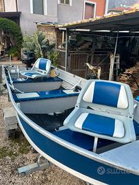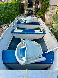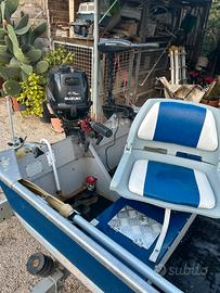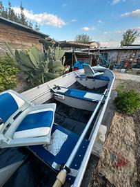 Vendo barca canadian 370 italmarine. Barca dotata di seggiolini girevoli, vani porta oggetto, vano porta batteria, impianto 12v, presa 12v, stacca batteria, pompa di sentina, indicatore di carica batteria. Motore fuoribordo 4T 6cv con regolare libretto. Carrello regolarmente omologato con libretto di circolazione, luci, freni attuatore di frenata nuovi. Gomme e cerchi nuovi più coppia ruote di scorta. Tutto tenuto in maniera maniacale. Non valuto scambi o offerte folli. (Motore elettrico in foto non in vendita)