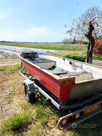 Simil canadian in alluminio gia predisposta per la pinalatura usata in fiume per pesca al Black Bass 440x155 molto stabile a differenza di molte altre... la barca ha gia un impianto elettrico con stacca batteria sia per motore elettrico di prua che le luci di via