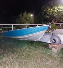 Barca Canadian in ottime condizioni con motore 8 cv 2 tempi e carrello omologato e revisionato. La barca ha 4 porta canne girevoli ruote balloon dietro e avanti. Prezzo 1.800,00 poco trattabile