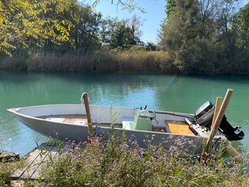 La barca monta motore 737 johnson con trim elettrico e guida a monoleva.