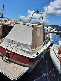 Barca cantiere Solcio Fiord Fly 30 anno 83 motori volvo penta 165 cv turbo intercooler , elica di prua vetus doppio comando anno 2024, carica batteria 220volt , boiler , inverter 3000 watt 12 volt 220 volt , salpa ancora elettrico, ecoscandaglio furuno fcv 1100 a colori con scarpa interna a bagno d olio 1kw, due gps cartografico lowrance , impianto stereo, cuscineria , tendaggi, tendalino e chiusura laterali anno 2023, bagno , cucina, posti letto comodi 5 pax . Nodi crociera 22 max 28. Qualsiasi prova in acqua. Vendo per cambio di tipologia di barca ! Prezzo leggermente trattabile, no perditempo.