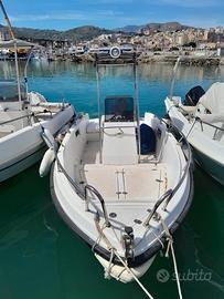 Vendesi barca di 6mt costruita in cantiere omologata per sei persone dotata di tecnologia moderna, ecoscandaglio, pannello solare per ricaricare n2 batterie, faro biluce per guida notturna, doccia scaletta di risalita, vasca per il vivo, distanziate in acciaio super per montaggio motore Yamaha 40/70 supremo con poche ore di navigazione, completa di cuscineria mai usata.