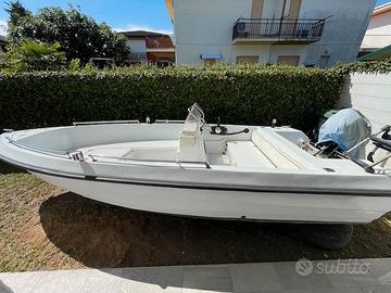 la barca (con dei lavori da fare) è praticamente regalata. il motore Tohatsu 20 CV quattro tempi ha circa 20 ore di utilizzo. Praticamente nuovo completo di kit comandi al volante. Accensine e trim elettrico