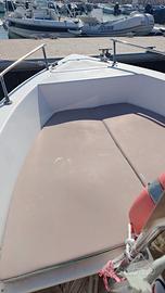 Vendesi barca a motore Mercury f 40 Efi del 2019, usato pochissimo, 10 ore a stagione circa( motore 40 cv) barca in condizioni ottime, doppia batteria Varta, stacca batteria, impianto elettrico nuovo, pompa sentina maggiorata con galleggiante automatico, cavi nuovi per timoneria e sterzo e comandi motore, luci e luci notturne funzionanti, quadro comandi con voltimetro, porta usb per ricarica cellulare o accessorio, interruttore per luci, pompa, e 3° luce. antivegetativa, barca pronta per uscire in mare, murate alte della barca, adatta per le onde e mare leggermente agitato come da foto con arco in acciaio inox, tendalino incluso. Barca di 5,50 mt