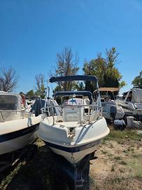 Barca completa: di carrello,2tendalini ,serbatoio acqua con doccino, batteria servizi, pompa sentina e motore Suzuki ARI 40hp nuovo. Pronta a partire. Lunghezza 5.50mt