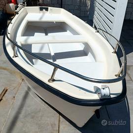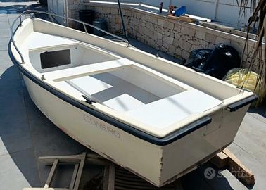 Barca Conero di circa 4,5 metri in buone condizioni. Il cantiere navale italiano Conero è conosciuto per robustezza e ottime doti marine dei suoi scafi. La barca è un comodo open, munito di gavone di prua con carrucola per ancora, seduta di prua, seduta centrale trasversale e seduta di poppa; sono state montate 3 bitte nuove e la predisposizione per 2 portacanna in acciaio inox. Ideale per la pesca costiera e per trascorrere giornate in relax. Non è stata applicata l'antivegetativa esclusivamente per permettere di ispezionare la carena che NON presenta alcun danno, riparazione e osmosi; la latta viene inclusa nel prezzo. Vendo per inutilizzo. Il prezzo è di 580,00 euro (latta di antivegetativa inclusa). Con il supplemento di 50,00 euro è possibile avere anche i 2 partacanna in acciaio inox dal valore di 45,00 euro l'uno. Con il supplemento di 70,00 euro viene applicata a regola d'arte l'antivegetativa colore bianco.