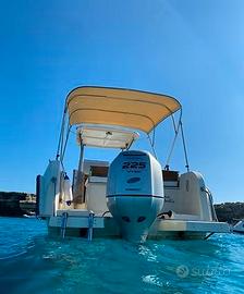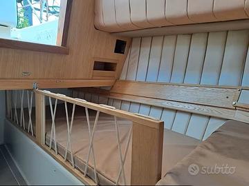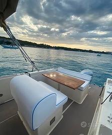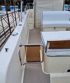Proponiamo bellissima barca Coral Bay 27 Walkaround, completa di motore Honda BF225 anno 2010 con 430 ore di moto, meccanica ed estetica impeccabili, Timoneria idraulica nuova (maggiorata fino a 350 CV). La barca ha beneficiato di un importante e profondo refit nel 2023, curato in ogni minimo dettaglio. •Accessori: T-Top in vetroresina + tendalino a 4 archi in acciaio inox, Verricello elettrico con doppio comando (prua/consolle), flap idraulici con comando in consolle, impianto elettrico rifatto completamente nel 2023, impianto 220V con carica batterie Victron e presa banchina con 20 mt. Di cavo, illuminazione full Led (cabina e pozzetto), GPS/Eco Garmin 7 Plus, Frigo Dometic 40L integrato, doppia doccetta esterna (acqua dolce e acqua salata). Serbatoio acqua 80L, due serbatoi benzina (90+130L) con imbarchi separati, ESTERNI E COMFORT: Ampio pozzetto di poppa con elegante tavolo in Teak e Acero. Ampi gavoni interni ed esterni per lunghe permanenze a bordo. Cuscineria esterna nuova e paiolato integrale in Eva Foam. Copri-console su misura (2023), nuova scaletta inox da 120 cm INTERNI (Refit 2023): •Cabina molto spaziosa con 3 posti letto (cuscineria e rivestimenti nuovi). •Lavabo interno, WC a scomparsa e doccetta dedicata. •Paiolato interno in Eva Foam. CONDIZIONI: La barca è in condizioni eccellenti, pronta per la navigazione senza alcun lavoro da eseguire. Disponibile per qualsiasi prova e visione. 💰 Prezzo: 24.000 € Possibilità di finanziamento Agos fino a 120 rate. 📍 Località: Nautica Mangè 📞 Contatti: – mobile