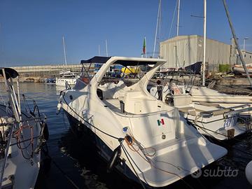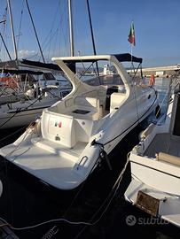 Coverline SeaCode 28 cabin anno 2008 + Carrello 12m GEPA CAR RM2, in ottime condizioni, sempre tenuto al coperto, gommato nuovo 2 Motori Mercruiser 4.3 M.P.I. 2 x 220 cv. (benzina), 500 ore di moto Piedi alpha one completo di accessori di serie Gps Raymarine Vhf nuovo (mai utilizzato) Ecoscandaglio Quadro comandi nuovo Impianto Stereo impiantoTV, Impianto Banchina 220v, Impianto da 12v. e 220v in cabina, Impianto presa diretta acqua banchina installato giugno 2025 Boiler acqua calda nuovo installato giugno 2025 Bagno locale separato con wc elettrico con pozzo nero Doccia calda interna bagno ed esterna 2 frigo 48 lt. interno ed esterno Cucina con lavello interno Lavello esterno Cuscineria completa interna ed esterna come nuova Microonde Samsung installato giugno 2025 Spiaggetta di poppa con scaletta a scomparsa Verricello elettrico Flaps idraulici con indicatori Luci subacquee installate giugno 2025 04 batterie da 80Ah Quadro elettrico in cabina Commutatore batterie Raddirizzatore Bombola gas Impianto acqua 140lt Impianto carburante 420lt Tendalino sole nuovo (mai usato) Cappottina chiusura camper totale Ombreggianti/zanzariera chiusura camper totale completa realizzati giugno 2025 (mai usati) Telo copri barca nuovo realizzato giugno 2025 (mai usato) Luci di cortesia su rollbar e calpestio pozzetto prendisole di poppa trasformabile in tavolo da pranzo cofano di poppa 2 cabine separate da tende poppa e prua, guardaroba e scarpiera. Gruppo Elettrogeno Hyundai cilindrata 149,5 cc, potenza massima erogabile 300 watt, potenza continua 288 watt, motore 4 tempi benzina, capacita 7,5 litri, autonomia 12 ore, silenzioso, installato giugno 2025 Zattera di salvataggio La barca non necessita di alcun lavoro, è tenuta in modo maniacale, manutenzione ordinaria e straordinaria ai motori effettuata tra i mesi di febbraio 2025 e giugno 2025, compreso fondo, lucidatura murate, gommature nuove; la stessa è stata varata ad Agosto 2025. Vendita per trasferimento lavorativo