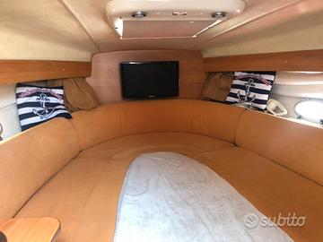 Anno di costruzione 2004 messo in mare 2006 Lunghezza: 8.44 Larghezza: 3m Motori volvo penta 4.3 gxi 2x225cv Solamente 300 ore Ultimo Tagliando 2024 Piedi poppieri completamente revisionati 2022 con fatture .Letto matrimoniale di poppa Dinette interna trasformabile in matrimoniale 4 posti letto 1 bagno con wc elettrico Cucina attrezzata Piano cottura a 2 fuochi nuovi 2021 Lavandino con rubinetto nuovi 2021 Tavolo esterno nuovo in legno Roll bar con luci led Passaggi laterali più passaggio centrale per andare a prua Ampio prendi sole di prua nuovo, Luci di posizione pozzetto, Gruette telescopiche per tender GPS, Cerdeck (teak sintetico morbido), in pozzetto e paiolato interno Tendalini beige Chiusura totale pozzetto blu Cuscineria interna ed esterna (compreso prendisole di prua) in pelle beige Serbatoio acque nere con maceratore nuovo Plancetta di poppa con cerdeck , TV, DVD, radio forno a microonde, cucina ecc ecc.