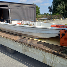 Barca da fiume in vetroresina da sistemare solo per estetica Doppia scafo in vetroresina Tappi svuotamento Cuscini e copri barca presenti
