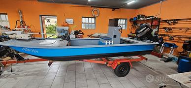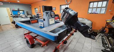 Vendo barca ungherese 4.80mt a fondo piatto, perfetta per pesca in fiume. Impianto elettrico nuovo, panche nuove con struttura in alluminio, faro a led anteriore con telecomando, barra a led interna, batteria anteriore per l'illuminazione e accessori e una batteria sulla pilotina per servizi e pompe di sentina automatiche. Motore elettrico watersnake anteriore con pedaliera, motore Yamaha top 700 autolube con elica nuova, serbatoio carburante 30lt con possibilità di aggiungere un secondo serbatoio, indicatore carburante su pilotina. Carrello porta barca revisionato con gomme e impianto elettrico nuovi. Per qualsiasi domanda contattami